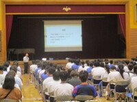 本日6時間目は、3年生保護者生徒を対象とした第2回の進路説明会が行われました。例年1回に実施ですが、今年は充実した夏休みを過ごせるよう、7月に第1回を実施しています。今後の入試までのスケジュール、必要な手続き等、詳しい説明がありました。来週には、第1回の市学力検査が行われます。夏休みの成果を確認し、それぞれの第一志望校を目指して、より一層学習に身を入れた生活となることを願っています。