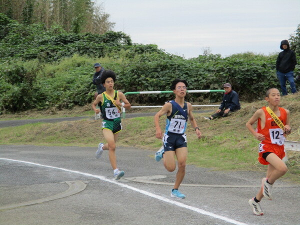 素晴らしい成績を収めた女子チームの結果を受け、盛り上がる西原中駅伝部。11時30分よりいよいよ男子のスタートとなりました。気温は、ほぼ変わらぬ曇り空。それでも雨が降り出さなかったことは何よりかと思います。15名が厳しい練習に参加し、6名の選手が出場しました。昨年は33位。今年の目標は、35位です。1区3年生がスタート。今年は昨年の結果を受けて3列でスタートする1列目でスタート。好位置をうまく生かし20位台を走る好スタートをきりました。しかし1区は、区間新記録が出るほどのハイペース。必死の走りの中、転倒。それでもすぐに立ち上がり走り出す選手。痛みもあったかと思いますが走り続ける根性の素晴らしさ。順位は57位。襷は2区3年生に渡されます。2区も3年生。前を向き一人でも追い抜こうと力強い走り。見事、2人を追い抜き、順位を55位に上げ3区に襷が渡されます。3区は、2年生。先輩から渡された襷を掛け、見事な快走。区間34位の記録で6人を追い抜きついに順位は49位へ。続く4区3年生は、さらに素晴らしいラストラン。なんと区間17位の快走。さらに4人を追い抜き順位は45位。順位がどんどん上がり、よい展開。選手たちの前向きな気持ちが走りからも伝わってきます。5区も3年生。ここでも順位を落とすことはありません。区間33位の走りを見せ、2人抜き、43位。6区アンカー2年生に最後の襷を託します。6区の走りも見事。強豪ひしめく6区の中、区間37位。レースも終盤で選手の間隔も広がっていますが、1人抜き去り、見事42位でのゴールとなりました。昨年と比べると順位は下がっていますが、タイムは同じ1時間6分台。3年前は、男子54位、女子60位だった西原中。今年は、男子42位、女子33位。この3年間での大きな成長を感じることができた大会となりました。練習を頑張った選手たち、支えてくださった保護者の皆様、そして選手たちの力を引き出そうと朝早くから熱心に指導してくれた先生方に心より感謝いたします。素晴らしい走りをありがとう。