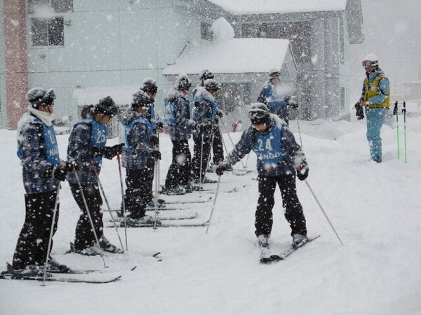 いよいよ自然の教室当日を迎えました。実行委員を中心に入念な準備を重ねてきましたが、先週からインフルエンザが広まり、参加できない生徒も多くいる中での初日となりました。高速道路、一般道と渋滞もなくスムーズに進みました。栃木県塩原温泉からは、景色も雪景色に変わり、福島県に入るころには、雪が降り続き、路面も真っ白な銀世界となりました。南郷スキー場到着後は、スキーのレンタル、昼食をとり、いよいよ班別のスキー実習。インストラクターの指示に真剣に耳を傾け、慣れないスキーと親しんでいました。大寒波が襲来している中、雪は降り続いていましたが、風がほとんどなく、ふかふかの雪を楽しむことができました。