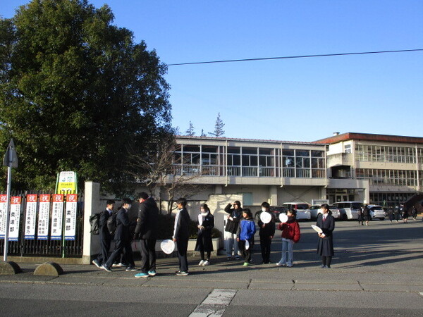 今日から1週間正門の前では西原小学校児童会、西原中学校生徒会によるハイタッチ挨拶運動が行われています。私も3年目となりますが、これまで行われたことのない新たな取組です。西原小・中の児童生徒が行き来し、手の絵が描かれたうちわに登校する生徒たちがハイタッチをしながら挨拶をしています。あいさつ運動は、これまでも生徒会や学級委員が行い続けてくれていますが、ハイタッチが加わることで、自然と笑みが生まれ、より一層明るい気持ちに生徒たちが正門を通るこの取組は、とても素晴らしいなと思っています。特に最近は居座り寒波の影響で寒い日が続いていますので、朝から寒さもふっとび元気が出てきますね。2月9日からは2回目も計画されています。素晴らしい取組、ありがとう。